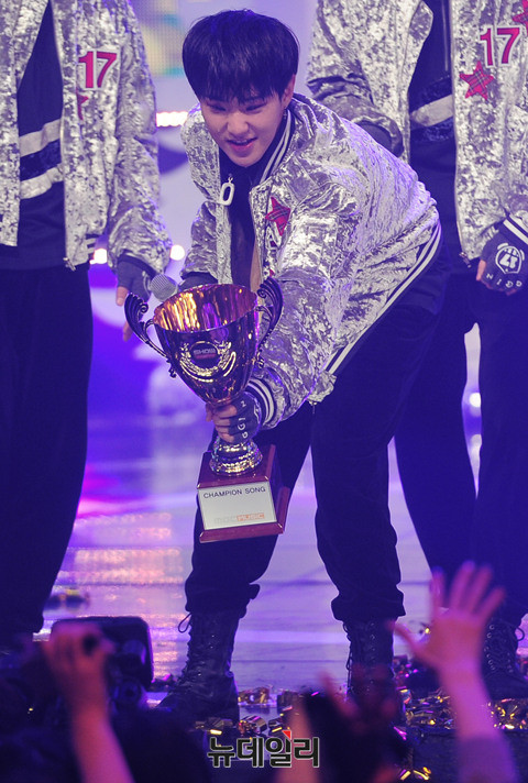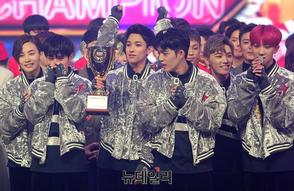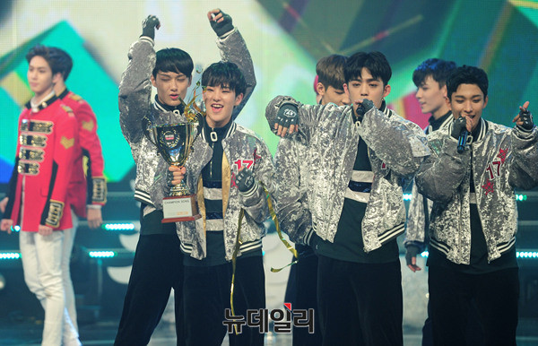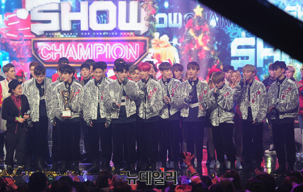 그룹 세븐틴(Seventeen : 에스쿱스, 정한, 조슈아, 준, 호시, 원우, 도겸, 민규, 디에잇, 승관, 버논, 디노, 우지)이 21일 오후 일산 MBC드림센터에서 열린 생방송 '쇼 챔피언(SHOW CHAMPION)'에서 '붐붐'으로 1위를 차지했다.