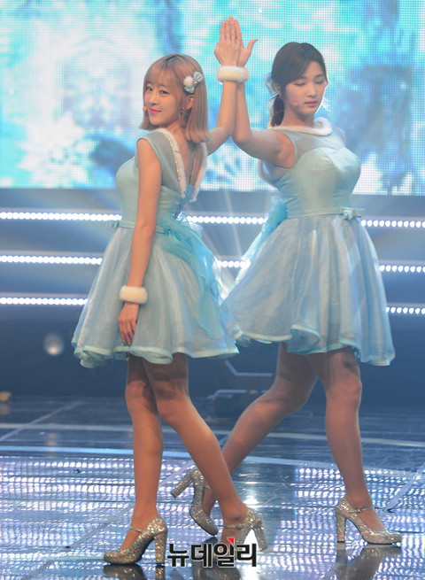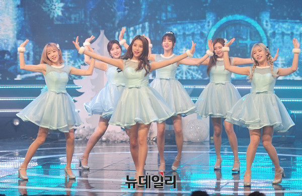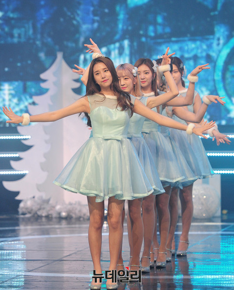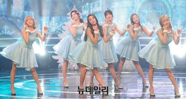 그룹 라붐(LABOUM : 솔빈, 율희, 해인, 유정, 소연, 지엔)이 21일 오후 일산 MBC드림센터에서 열린 생방송 '쇼 챔피언(SHOW CHAMPION)'에서 '겨울동화'를 열창하고 있다.