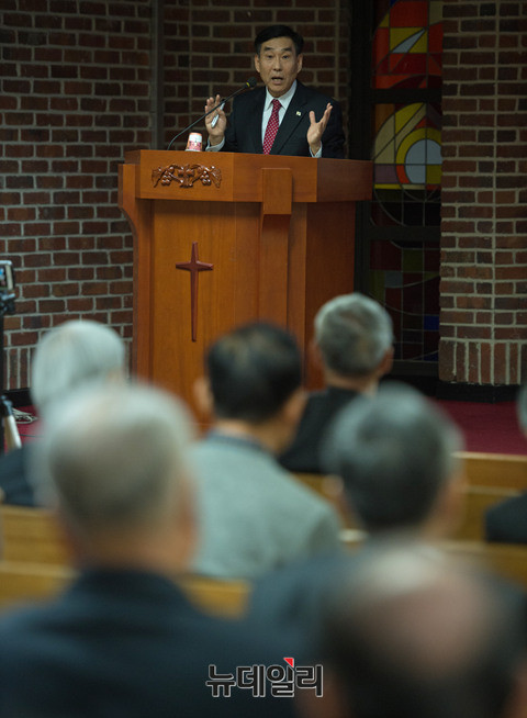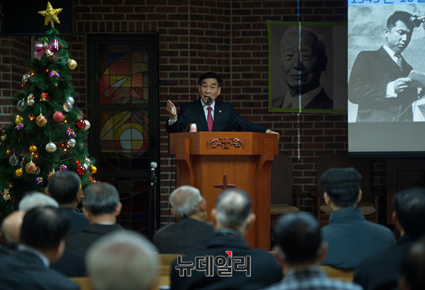 조시철 통일선교건국연구소장이 20일 오후 서울 중구 정동제일교회 아펜젤러홀에서 열린 제70회 이승만포럼에서 '대한민국의 역사적 흐름 속에서 현재의 국내사태와 국제정세'를 주제로 발표하고 있다.