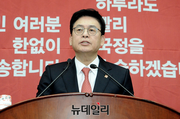 [포토] 모두발언하는 정우택 새누리당 신임 원내대표