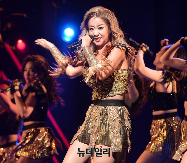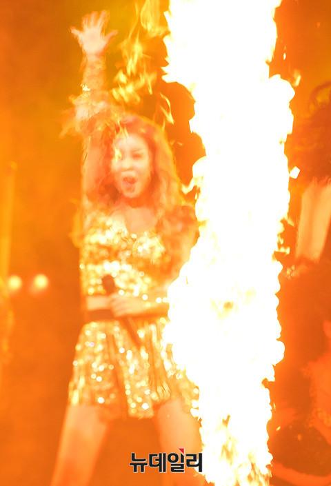 가수 양파(이은진)가 20일 오후 서울 강남구 LG아트센터에서 열린 뮤지컬 '보디가드' 프레스콜에서 하이라이트 장면을 시연하고 있다.