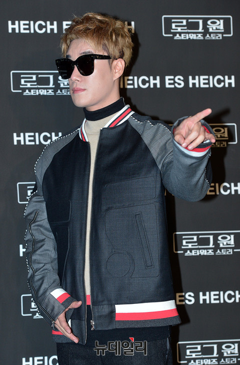가수 산이가 20일 오후 서울 강남구 드레스가든에서 열린 '로그 원:에이치 에스 에이치 2017S/S 컬렉션' 공개에 앞서 포토타임을 갖고 있다.