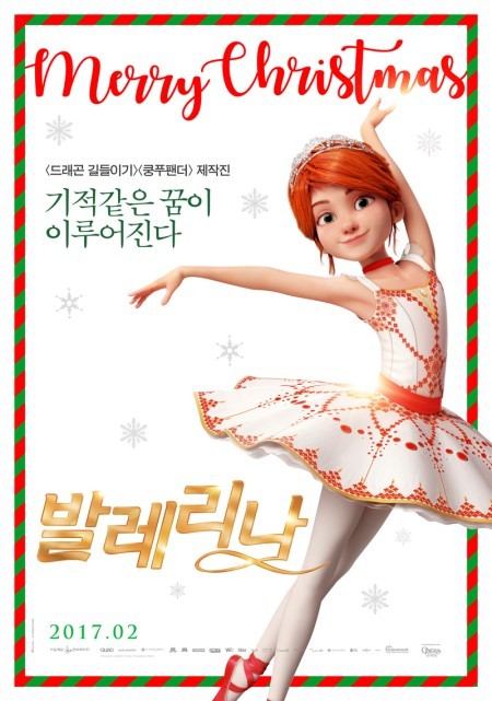 영화 '발레리나'가 크리스마스 기념 스페셜 포스터를 공개했다.'발레리나'(감독 에릭 섬머, 에릭 와린)는 토슈즈와 사랑에 빠진 소녀 펠리시가 최고만이 설 수 있는 파리 오페라 하우스 무대에 서기 위해 꿈과 열정의 모험을 시작하는 소녀 어드벤처 애니메이션.공개된 스페셜 포스터에는 레드컬러로 포인트를 준 발레복을 입고 점프하는 소녀 펠리시의 모습이 담겼다. 크리스마스를 상징하는 레드와 그린 컬러를 비롯해 하얀 눈꽃송이가 펠리시의 주변을 수놓으며 크리스마스 분위기 물씬 풍기긴다.또, '기적같은 꿈이 이루어진다'라는 카피가 더해져 영화 속 소녀 펠리시의 꿈을 향한 열정뿐만 아니라 크리스마스의 기적을 바라는 모든 사람들의 소망을 함께 나타내 눈길을 끈다.영화 '발레리나'는 '드래곤 길들이기', '쿵푸팬더' 제작진이 참여해 완성도 높은 애니메이션의 탄생을 예고하고 있다. 여기에 엘르 패닝, 데인 드한 등 최고의 할리우드 배우들이 목소리 연기를 펼치며 2017년 상반기 기대작으로 손꼽힌다.소녀 어드벤처 애니메이션 '발레리나'는 2017년 2월 국내 개봉 예정이다.[사진=판씨네마]