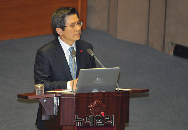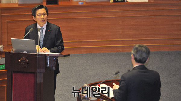 황교안 대통령권한대행이 21일 오후 국회에서 열린 대정부질문에서 의원들의 질의에 답변하고 있다.