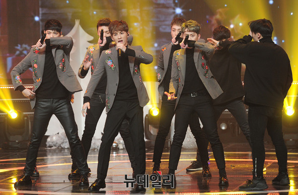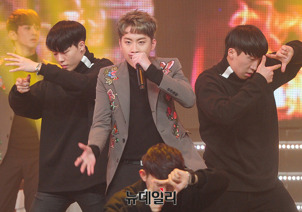그룹 엠펙트(MFECT : M건, 로우, 자몽, 보호, 제일)이 지난 21일 오후 일산 MBC드림센터에서 열린 생방송 '쇼 챔피언(SHOW CHAMPION)'에서 '그냥 너'를 열창하고 있다.