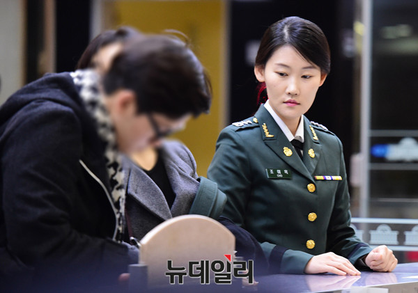 청와대 간호장교였던 조여옥 대위가 22일 오전 국회에서 열린 '박근혜 정부의 최순실 등 민간인에 의한 국정농단 의혹사건 진상규명을 위한 국정조사 5차 청문회'에 참석하고 있다.(사진=공동취재단)
