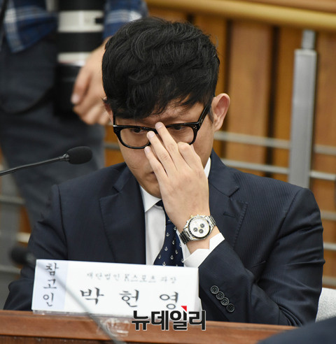 박헌영 전 K스포츠재단 과장이 22일 오전 국회에서 열린 '박근혜 정부의 최순실 등 민간인에 의한 국정농단 의혹사건 진실규명을 위한 국정조사특위 제5차 청문회'에 참고인으로 출석해 증인선서를 하고 있다. (사진=사진공동취재단)