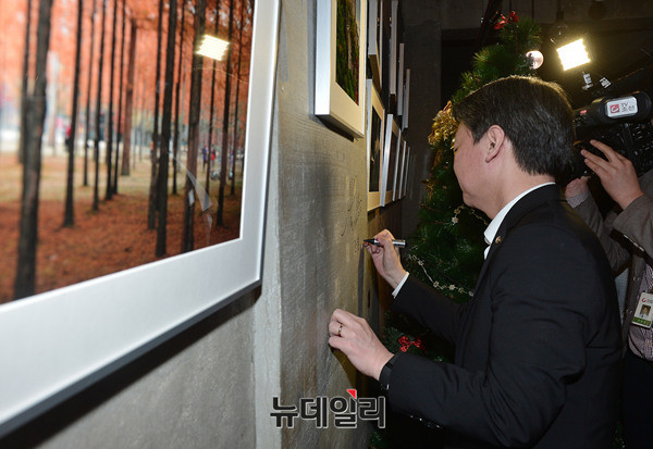 안철수 전 국민의당 상임공동대표가 22일 오후 서울 마포구의 한 카페에서 열린 '정치를 바꾸는 해커톤 특강'에 참석해 자료를 살펴보고 있다. 이날 오전 안 전 대표는 문재인 전 더불어민주당 대표, 손학규 전 민주당 대표, 남경필 경기도지사와 함께 중소기업중앙회에서 열린 '진보-보수 합동토론회'에 참석했다.