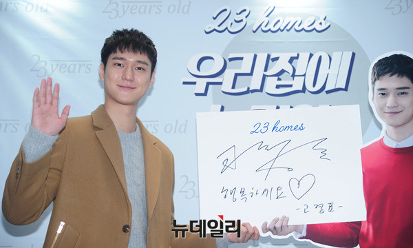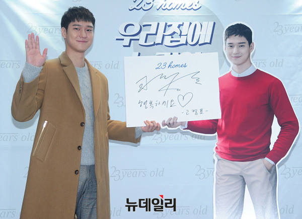 배우 고경표가 23일 오후 서울 용산구 '23HOMES' 플래그쉽 스토어에서 열린 오픈 기념 팬사인회에 참석해 사인을 들어 보이고 있다.