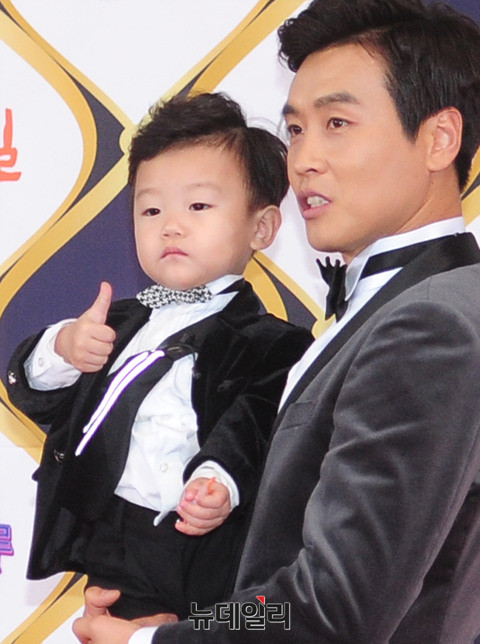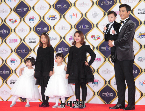 축구선수 이동국과 다섯남매(이설아, 이수아, 이시안, 이재아, 이재시)가 지난 24일 오후 서울 KBS 신관에서 열린 '2016 KBS 연예대상'에 참석해 포토타임을 갖고 있다.