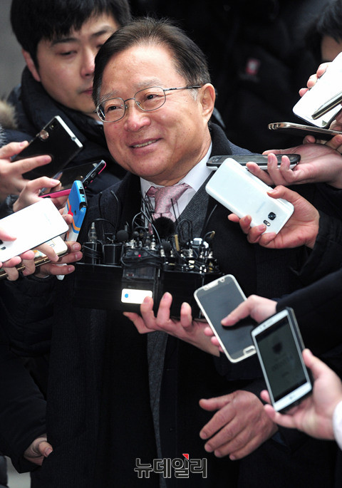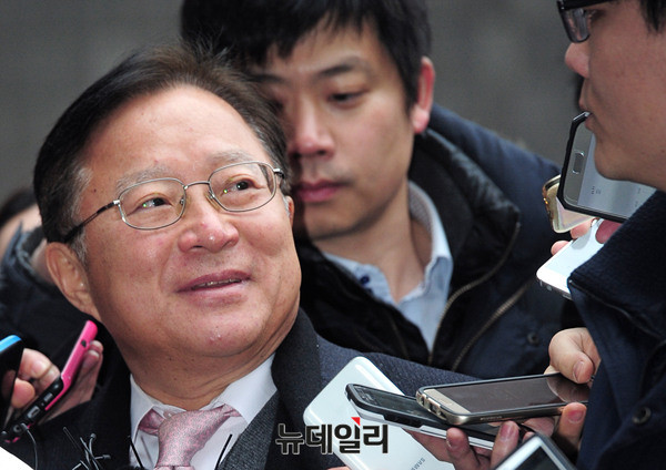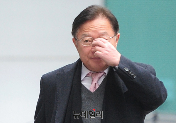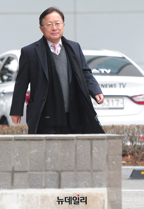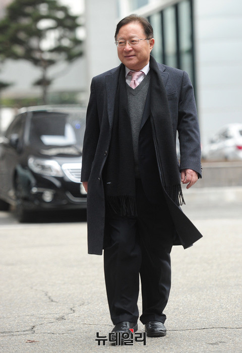 송희영 전 조선일보 주필이 26일 오전 서울중앙지검에 피의자 신분으로 소환돼 출석하고 있다. 송 전 주필은 홍보대행사 뉴스커뮤니케이션즈 박수환 전 대표와 함께 남상태 전 대우조선해양 사장의 연임 로비 의혹을 받고 있다.