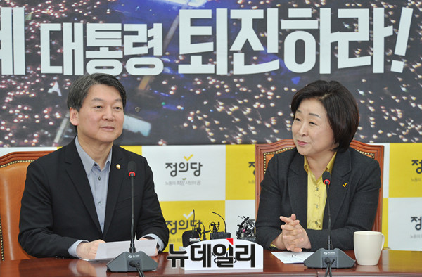 국민의당 안철수 전 대표와 정의당 심상정 대표가 26일 국회 정의당 대표실에서 현안관련 회동을 갖고 있다.