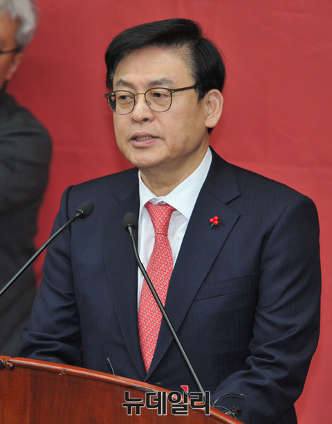 새누리당 정우택 원내대표가 26일 오후 국회에서 열린 새누리당 의원총회에서 모두발언을 하고 있다.