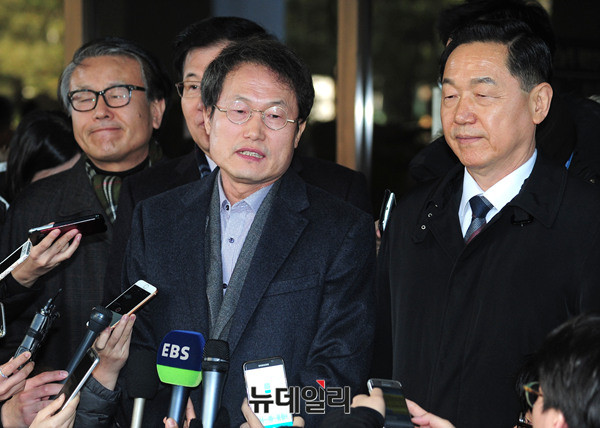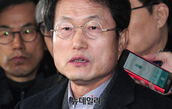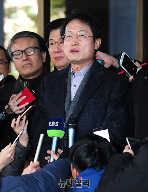 조희연 서울시교육감이 27일 오전 서울 대법원에서 열린 상고심 판결 후 소감을 말하고 있다. 이날 대법원 1부는 지방교육자치에 관한 법률 위반 혐의로 기소된 조 교육감의 상고심에서 벌금 250만원의 선고유예를 확정했다.
