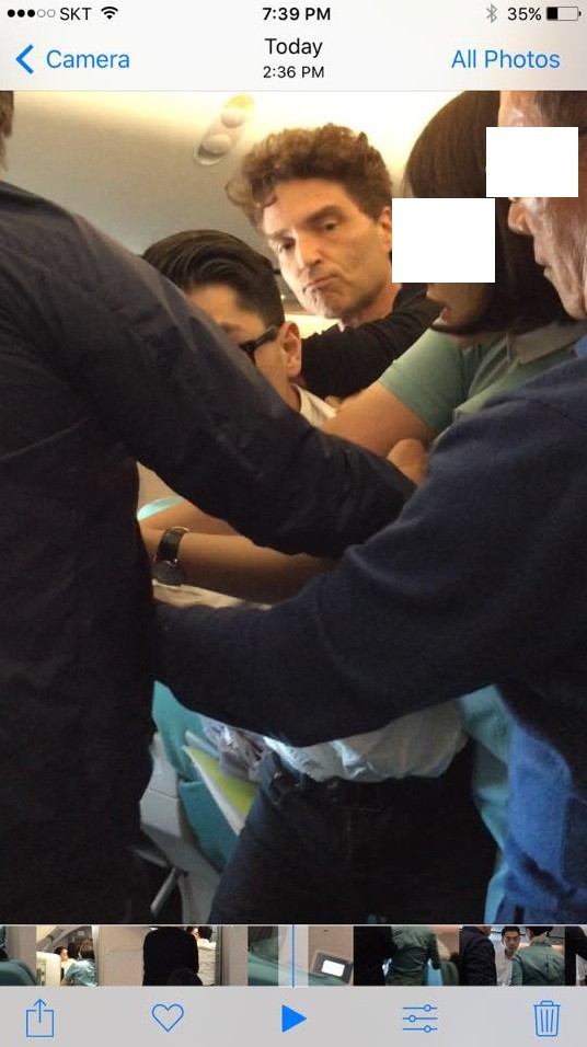 ▲조광형 = 물론 있죠. 리차드 막스가 올린 사진에도 스튜어드의 모습이 보이는데요. 워낙 승객의 저항이 심해 제지가 쉽지 않았던 모양입니다. 실제로 승무원과 리차드 막스 등이 합세해 이 남성을 의자에 묶었는데요. 무려 3차례나 포승을 풀고 계속 소란을 피웠다고 합니다.