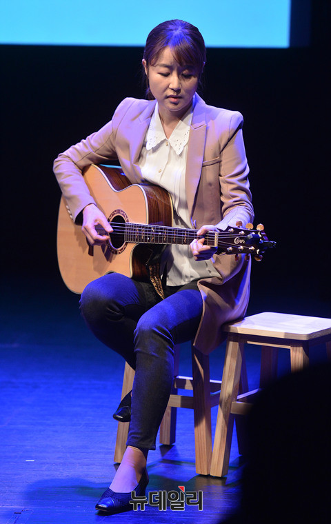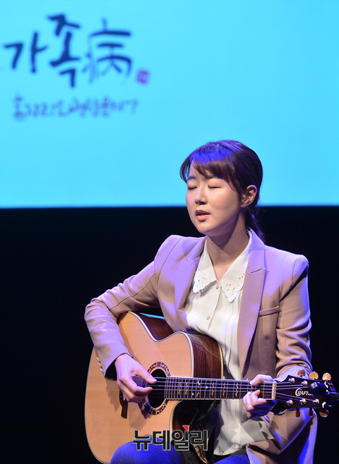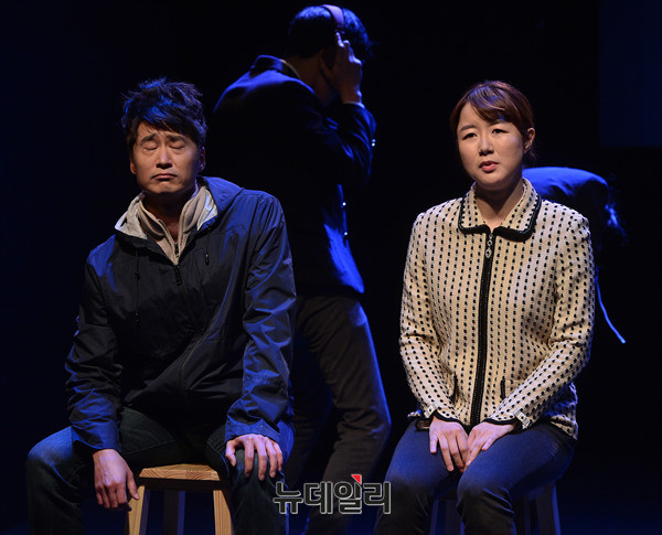 배우 양은주가 28일 오후 서울 대학로 소극장 혜화당에서 열린 연극 '가족病(병)-혼자라도 괜찮을까?' 프레스콜에서 장면을 시연하고 있다.