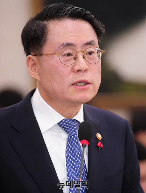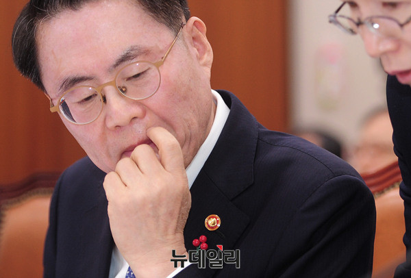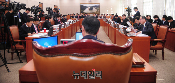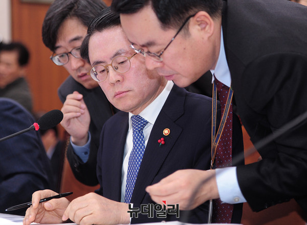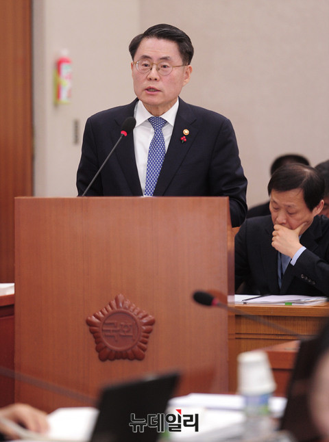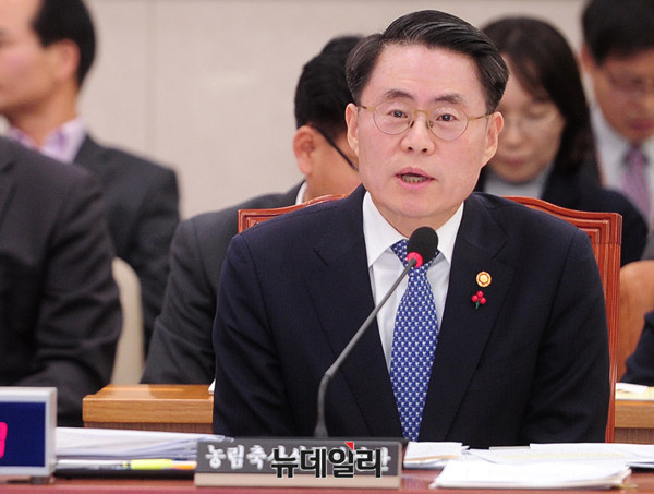 김재수 농림축산식품부 장관이 29일 오전 국회에서 열린 농해수위 전체회의에 참석해 업무보고를 하고 있다. 이날 회의에는 김재수 농림축산식품부 장관, 김영석 해양수산부 장관, 농림축산식품해양수산위 소속 여야 위원 등이 참석했다.