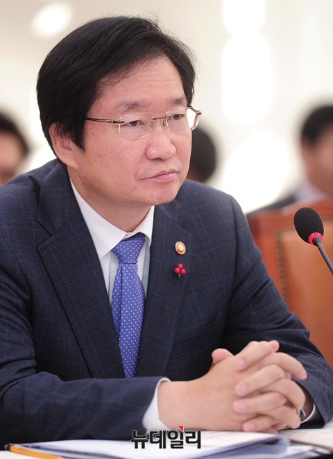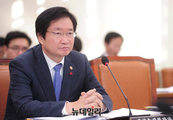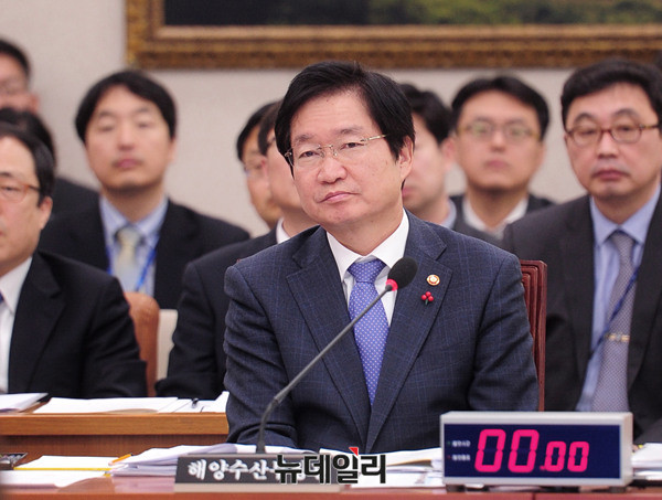 김영석 해양수산부 장관이 29일 국회에서 열린 농해수위 전체회의에 참석해 의원들의 질의를 듣고 있다. 이날 회의에는 김재수 농림축산식품부 장관, 김영석 해양수산부 장관, 농림축산식품해양수산위 소속 여야 위원 등이 참석했다.