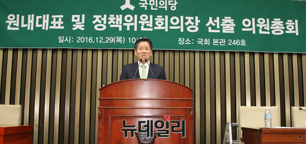 국민의당 신임 원내대표로 선출된 주승용 의원이 29일 오전 국회에서 열린 의원총회에서 당선소감을 밝히고 있다. (사진=공동취재단)