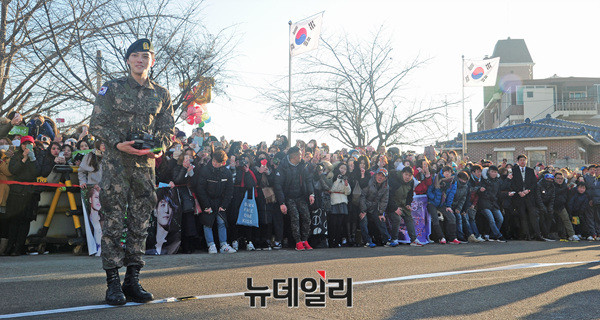 김재중은 지난 2015년 3월 경기 파주 1사단 신병교육대로 입소, 육군 55사단에서 군악병으로 21개월 동안 현역으로 복무했다.(경기 용인=뉴데일리 공준표 기자)