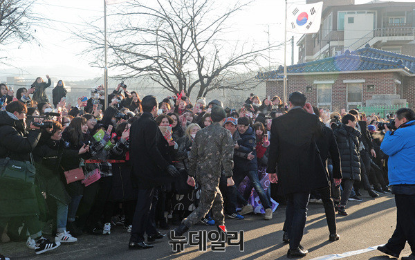 30일 오전 경기도 용인 55사단에서 전역식을 갖고 부대 밖으로 나온 김재중은 운집한 팬들 앞에 서서, 우렁찬 목소리로 "와 주셔서 감사합니다. 충성!"이라고 경례를 건넸다.