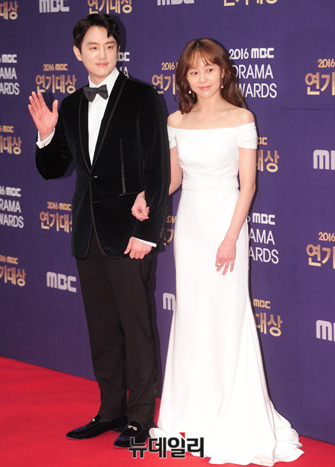 드라마 '한번더해피엔딩'의 배우 권율, 유다인이 26일 오후 서울 상암MBC에서 열린 '2016 MBC 연기대상'에 참석해 포토타임을 갖고 있다.