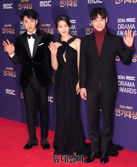 드라마 '불어라미풍아'의 배우 손호준, 임지연, 한주완이 26일 오후 서울 상암MBC에서 열린 '2016 MBC 연기대상'에 참석해 포토타임을 갖고 있다.