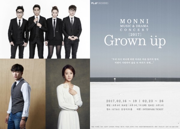 몽니 뮤직 드라마 콘서트 '2017 그로운업(Grown up)'의 티켓은 오는 11일 인터파크 티켓을 통해 오픈된다.