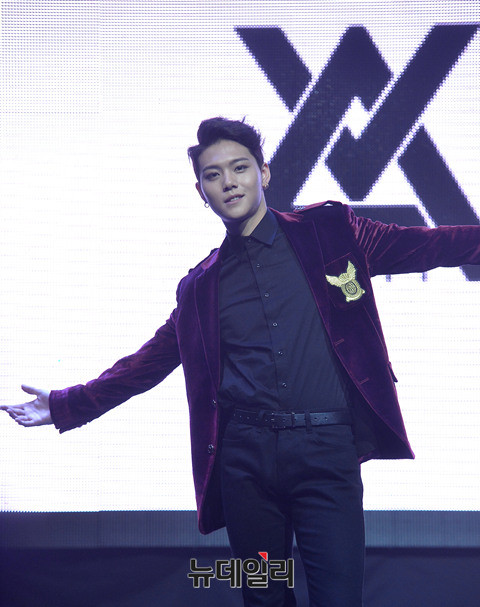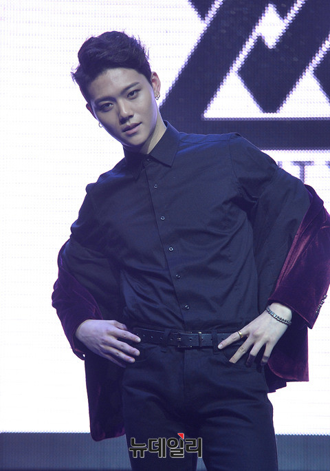 글로벌 아이돌 그룹 '바시티(VARSITY)' 멤버 씬이 2일 오후 서울 마포구 예스24무브홀에서 열린 데뷔 쇼케이스에서 포토타임을 갖고 있다.