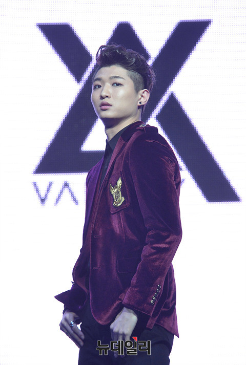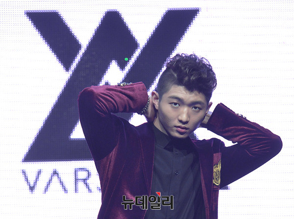 글로벌 아이돌 그룹 '바시티(VARSITY)' 멤버 데이먼이 2일 오후 서울 마포구 예스24무브홀에서 열린 데뷔 쇼케이스에서 포토타임을 갖고 있다.