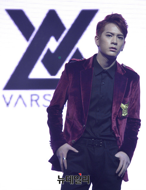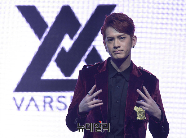 글로벌 아이돌 그룹 '바시티(VARSITY)' 멤버 엔써니가 2일 오후 서울 마포구 예스24무브홀에서 열린 데뷔 쇼케이스에서 포토타임을 갖고 있다.