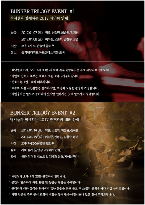 연극 '벙커 트릴로지'가 관객들의 뜨거운 성원에 보답하기 위해 사인회와 관객과의 대화를 진행한다.