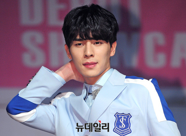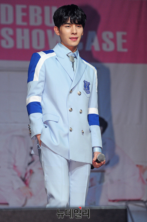 그룹 '일급비밀(Top Secret : 경하, 아인, 요한, 용현, 우영, 정훈, 케이)' 케이가 3일 오후 서울 마포구 하나투어브이홀에서 열린 데뷔 첫 미니앨범 '타임즈업(TIME'S UP)' 발매 기념 쇼케이스에 참석해 포토타임을 갖고 있다.