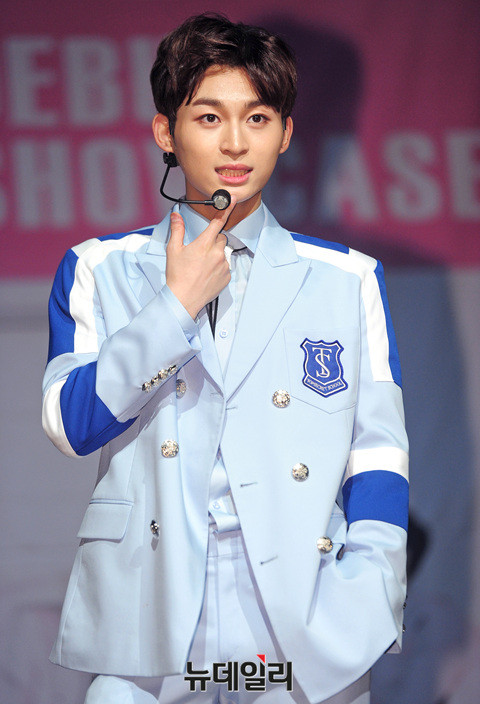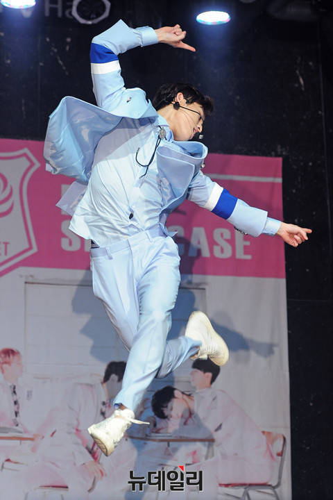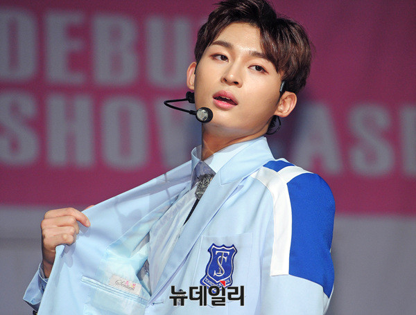 그룹 '일급비밀(Top Secret : 경하, 아인, 요한, 용현, 우영, 정훈, 케이)' 용현이 3일 오후 서울 마포구 하나투어브이홀에서 열린 데뷔 첫 미니앨범 '타임즈업(TIME'S UP)' 발매 기념 쇼케이스에 참석해 포토타임을 갖고 있다.