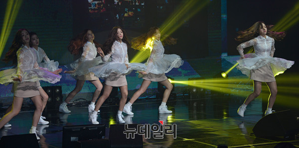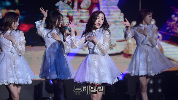아이돌 걸그룹 에이프릴(APRIL)이 4일 오후 서울 송파구 올림픽공원 K아트홀에서 열린 3번째 미니앨범 프렐류드(Prelude) 쇼케이스에서 타이틀 곡 '봄의 나라 이야기'를 선보이고 있다. 이날 사회는 레인보우 지숙이 맡았다.