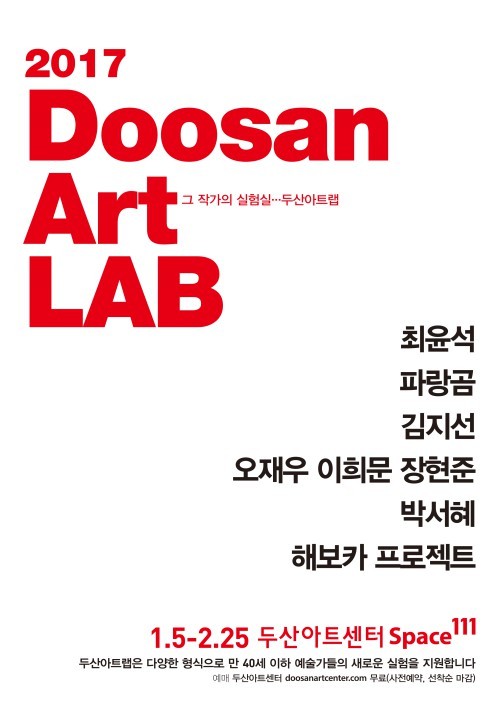 '2017 두산아트랩'은 두산아트센터 홈페이지에서 무료 예매 가능하며, 1인 1매로 선착순 마감된다.