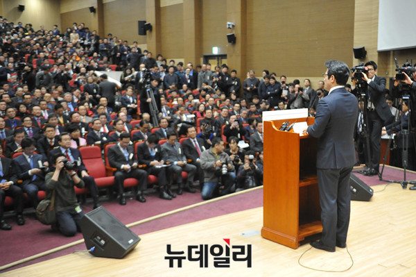 개혁보수신당(가칭) 중앙당 창당발기인대회가 5일 오후 국회의원회관 대회의실에서 열린 가운데 정병국 창당준비위원장이 발언을 하자 참석자들이 박수를 치고 있다.