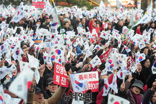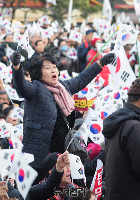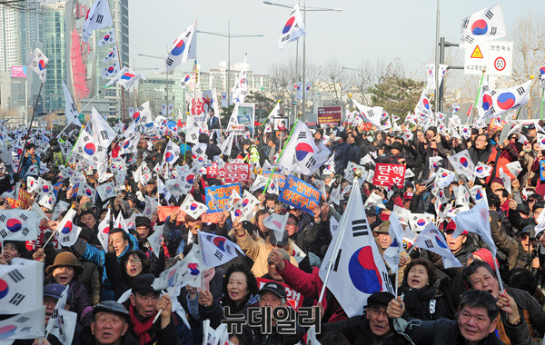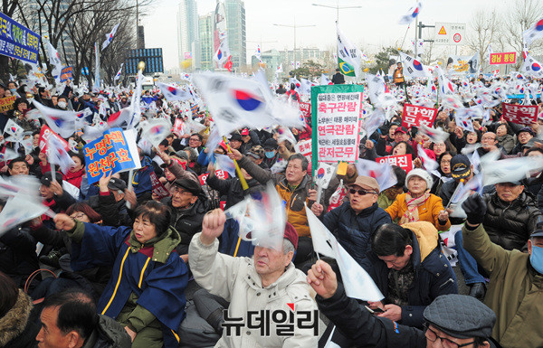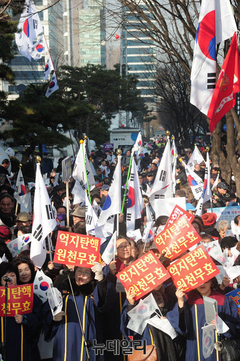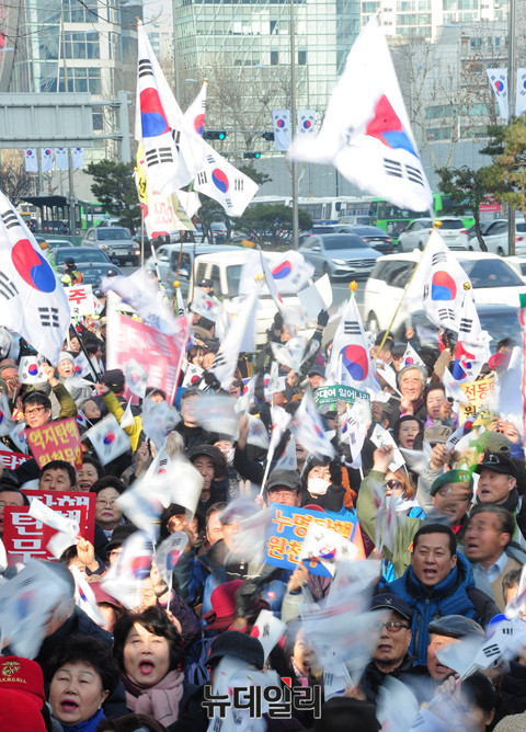 '대통령탄핵기각을위한국민총궐기운동본부(탄기국)'와 50여 개 애국단체들은 7일 오후 서울 강남구 삼성동 코엑스 앞에서 대규모 '박근혜대통령 탄핵반대 태극기 집회'를 열었다.