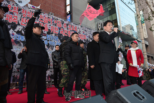 이날 집회는 오후 2시부터 코엑스 인근 영동대로에서 시작해 특검 사무실이 있는 선릉역을 거쳐 강남역 까지 태극기를 흔들며 가두행진을 이어갔다.