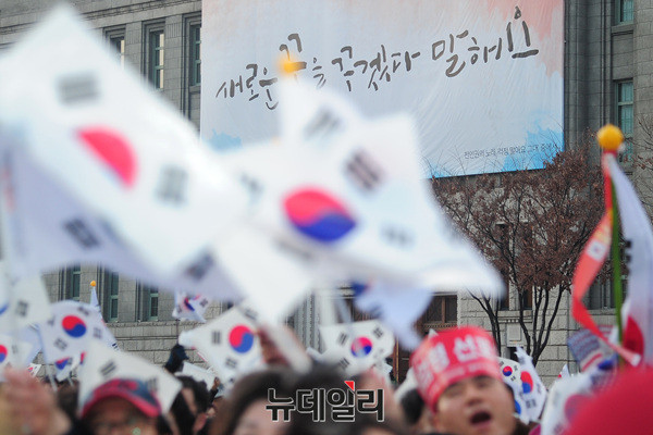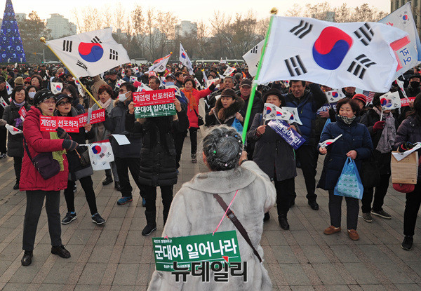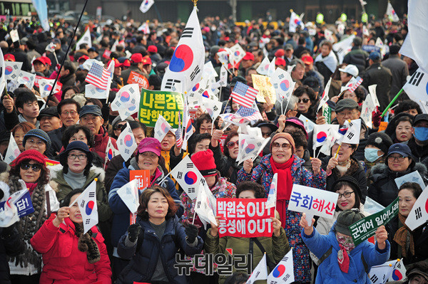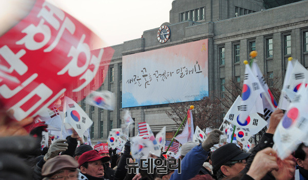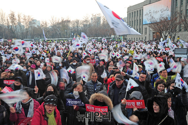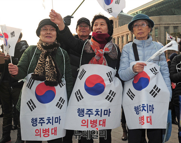 대한민국살리기애국시민운동을 비롯한 애국단체가 7일 오후 서울광장에서 '박근혜 대통령 탄핵반대'하는 태극기 집회를 개최했다. 집회참가자들은 '박근혜 대통령 탄핵반대'와 '박원순 서울시장을 규탄' 피켓을 들고 집회를 이어갔다.
