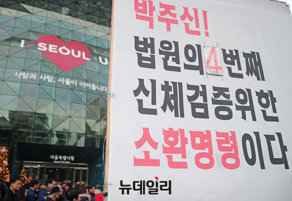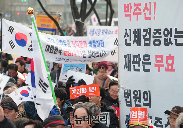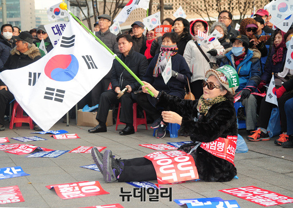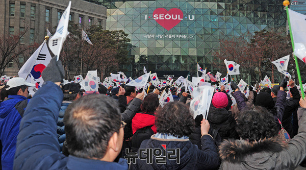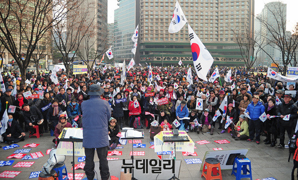 • 대한민국살리기애국시민운동을 비롯한 애국단체가 7일 오후 서울광장에서 '박근혜 대통령 탄핵반대'하는 태극기 집회를 개최했다. 집회참가자들은 '박근혜 대통령 탄핵반대'와 '박원순 서울시장을 규탄' 피켓을 들고 집회를 이어갔다.