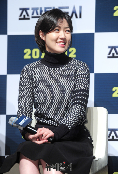 영화 '조작된도시(감독 박광현)'에서 대인기피증을 앓는 은둔형 초보 해커 여울 역을 맡은 배우 심은경이 9일 오전 압구정CGV에서 열린 제작발표회에 참석해 질문에 답하고 있다.