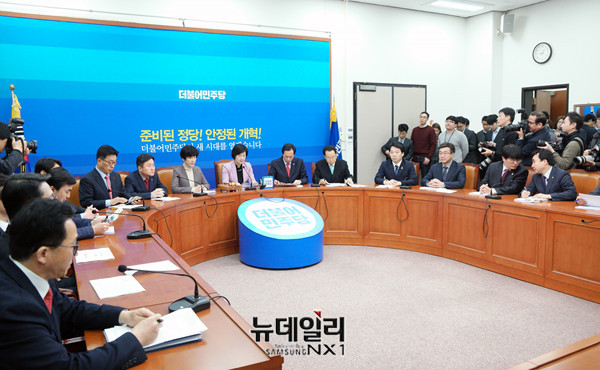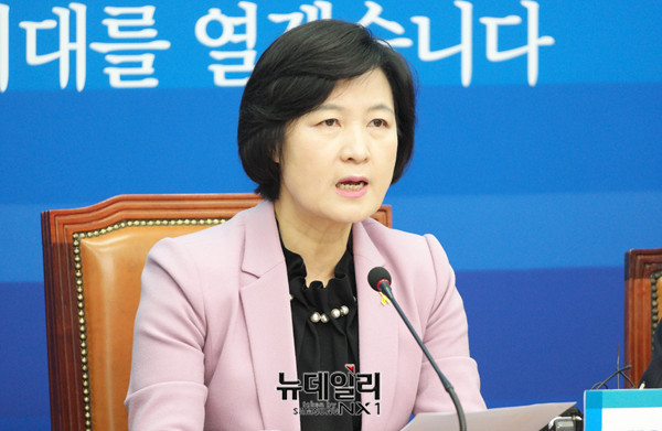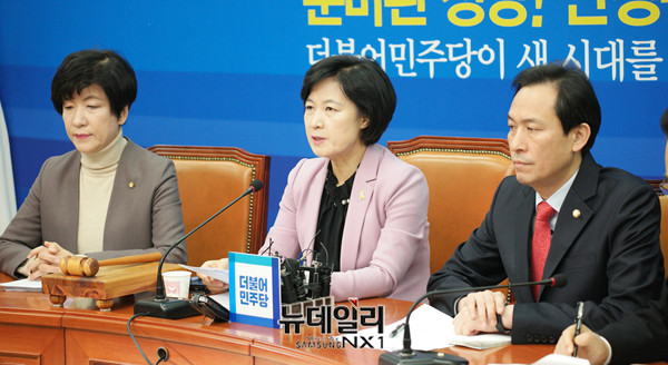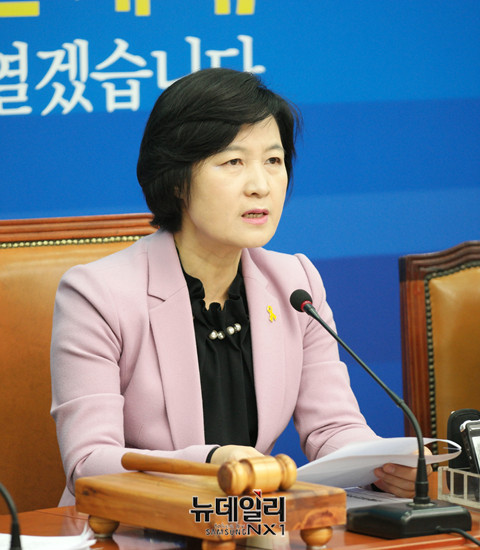 더불어민주당 추미애 대표가 9일 오전 국회 더불어민주당 당대표실에서 열린 최고위원회의에서 모두발언을 하고 있다.