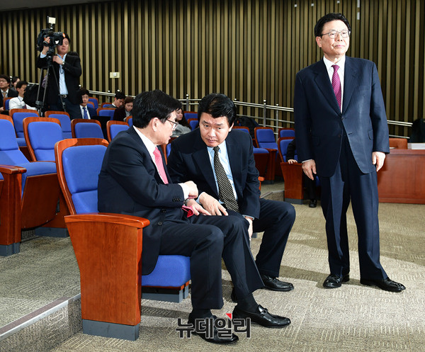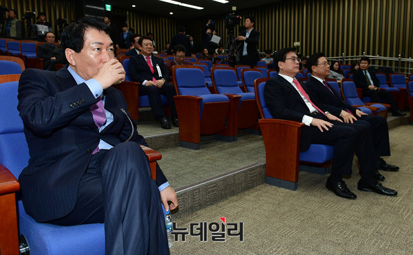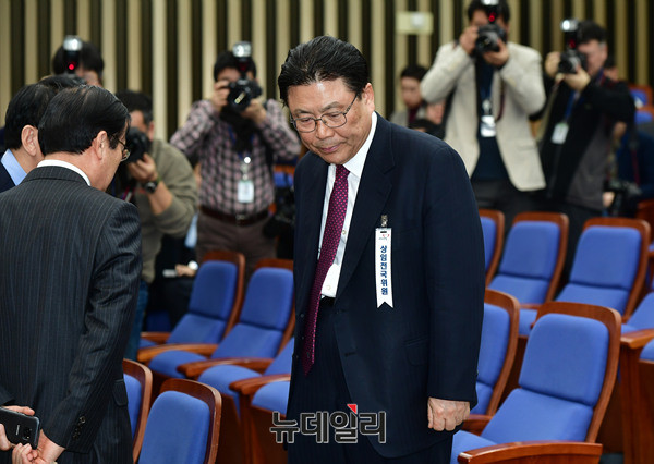 정우택 새누리당 원내대표가 9일 오후 국회에서 열린 '새누리당 제13차 전국상임위원회'에서 상임위원들을 기다리고 있다. 새누리당은 이날 전국상임위원회에서 비상대책위원회 구성안 등을 의결할 예정이었지만 정족수 미달로 위원회를 개회하지 못하고 있다.