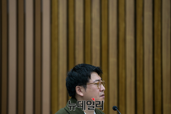 노승일 K스포츠 부장이 9일 오전 국회에서 열린 '박근혜 정부의 최순실 등 민간인에 의한 국정농단 의혹사건 진상규명 위한 국정조사특별위원회의 7차 청문회'에 출석해 앉아 있다.