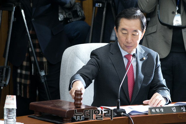김성태 최순실게이트 국조특위 위원장이 9일 오전 국회에서 열린 '박근혜 정부의 최순실 등 민간인에 의한 국정농단 의혹사건 진상규명을 위한 국정조사 7차 청문회'에서 의사봉을 두드리고 있다.