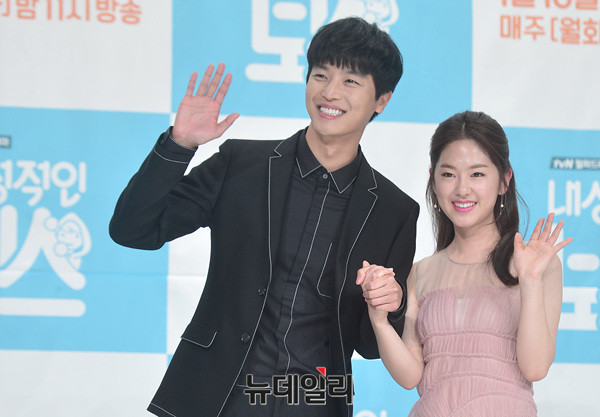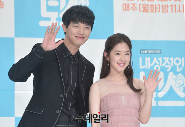 배우 연우진, 박혜수가 10일 오후 서울 영등포 타임스퀘어에서 열린 '내성적인보스' 제작발표회에 참석해 포토타임을 갖고있다.