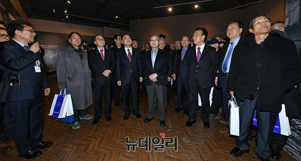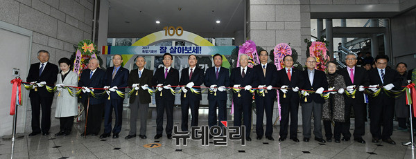 박정희탄생100돌기념사업추진위원회가 10일 오후 서울 용산구 전쟁기념관에서 '2017 특별기획전 희망과 도전의 시간들 잘 살아보세' 기획전에서 테이프커팅을 하고 있다. 이날 개막식에는 정홍원 박정희탄생100돌기념사업추진위원회위원장, 좌승희 (재)박정희대통령기념재단 이사장, 이인호 KBS 이사, 김관용 경북도지사, 남유진 구미시장 등이 참석해 개막을 축하했다.