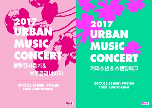 '2017 어반뮤직콘서트(URBAN MUSIC CONCERT)' 라인업이 공개됐다.2월 18, 19일 코엑스 오디토리움에서 양일간 진행되는 '어반뮤직콘서트'에는 따뜻한 음색과 개성 강한 팀들이 대거 합류한다.최근 음원차트 역주행 신화를 쓴 볼빨간사춘기, 드라마 '푸른바다의 전설', '역도 요정 김복주' 등 OST 참여로 재조명 받고 있는 커피소년과 스탠딩에그, 모던록 밴드 브로콜리너마저 등이 그 주역이다.이번 콘서트에는 지난해에 이어 '도시, 새로운시작, 그리고 당신을 위한 달콤한 음악'이라는 주제로 열린다. 주제에 걸맞게 삭막한 도심 속에서 추운 겨울을 보낸 이들에게 음악을 통해 크고 작은 위로를 선물할 예정이다.콘서트를 주최한 제이제이팩토리 측은 11일 "여러 사회적 이슈로 여느 때보다 침체되고 어두웠던 연말이었던 만큼 어반콘서트를 통해 관객들에게 조금이나 따뜻함과 희망을 전하고 싶다"고 밝혔다.'2017 어반뮤직콘서트' 티켓은 1월 11일부터 인터파크에서 예매할 수 있다.[사진=제이제이팩토리]
