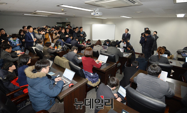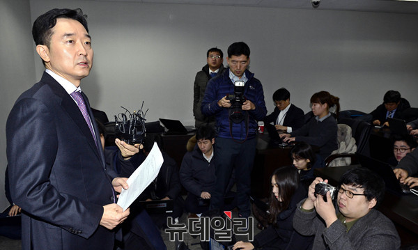 반기문 총장 측 이도운 대변인이 11일 오전 서울 마포트라펠리스에서 첫 기자간담회를 갖고 반 총장 일정을 설명하고 있다.